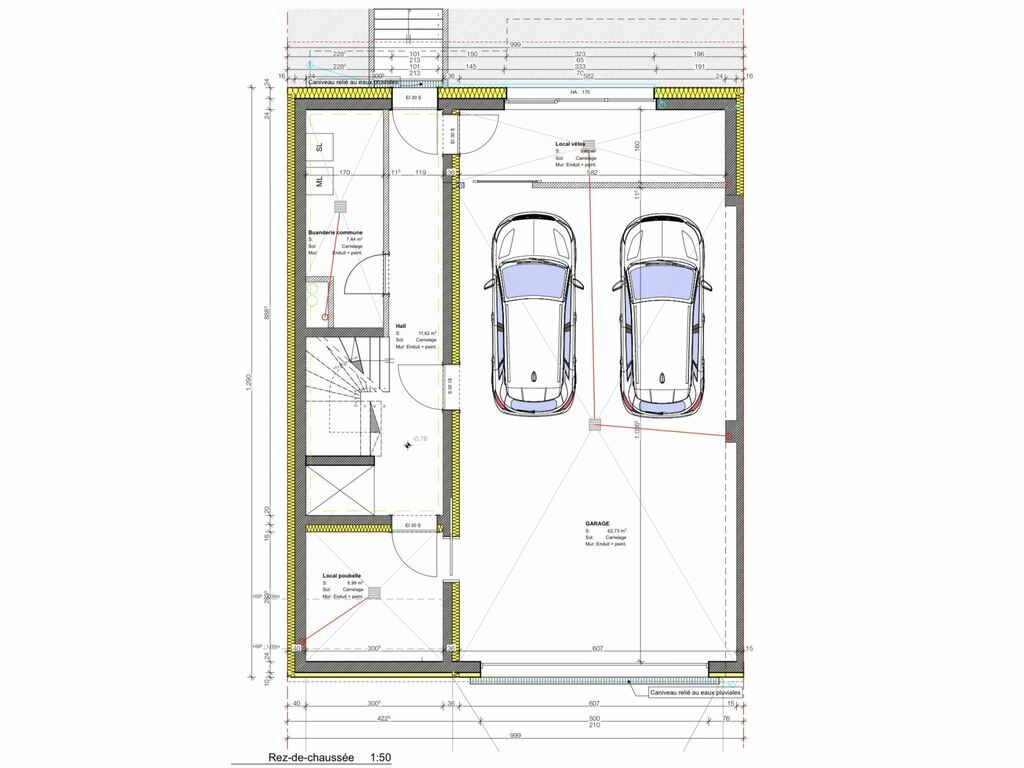 Nous vous proposons un appartement duplex en future construction de haute standing dans un immeuble bifamilial à Luxembourg-Belair près de la rue du Kiem. Il sera composer au rez-de-chaussée de hall d'entrée, d'une cuisine équipée ouverte sur salon et salle à manger 42,95m2 agrémenter d'un balcon donnant à l’arrière de l'immeuble, d'une chambre avec salle d'eau et wc 22,43m2, wc séparé. Au premier étage deux chambres et une salle de bain avec wc. Au sous-sol d'une cave, d'un emplacement intérieur 30m2.